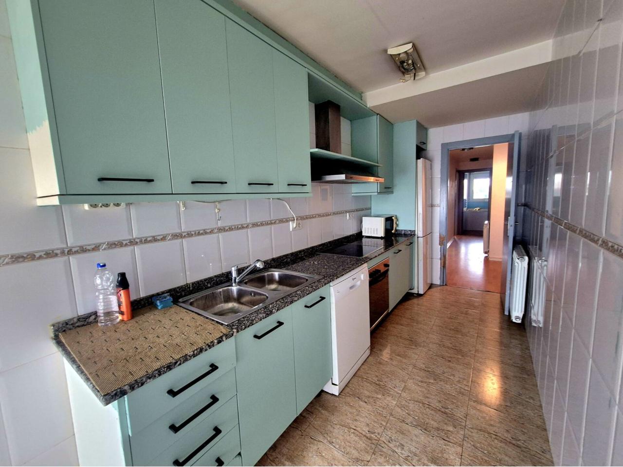 cocina equipada y muy luminosa con gran espacio para poner una mesa.